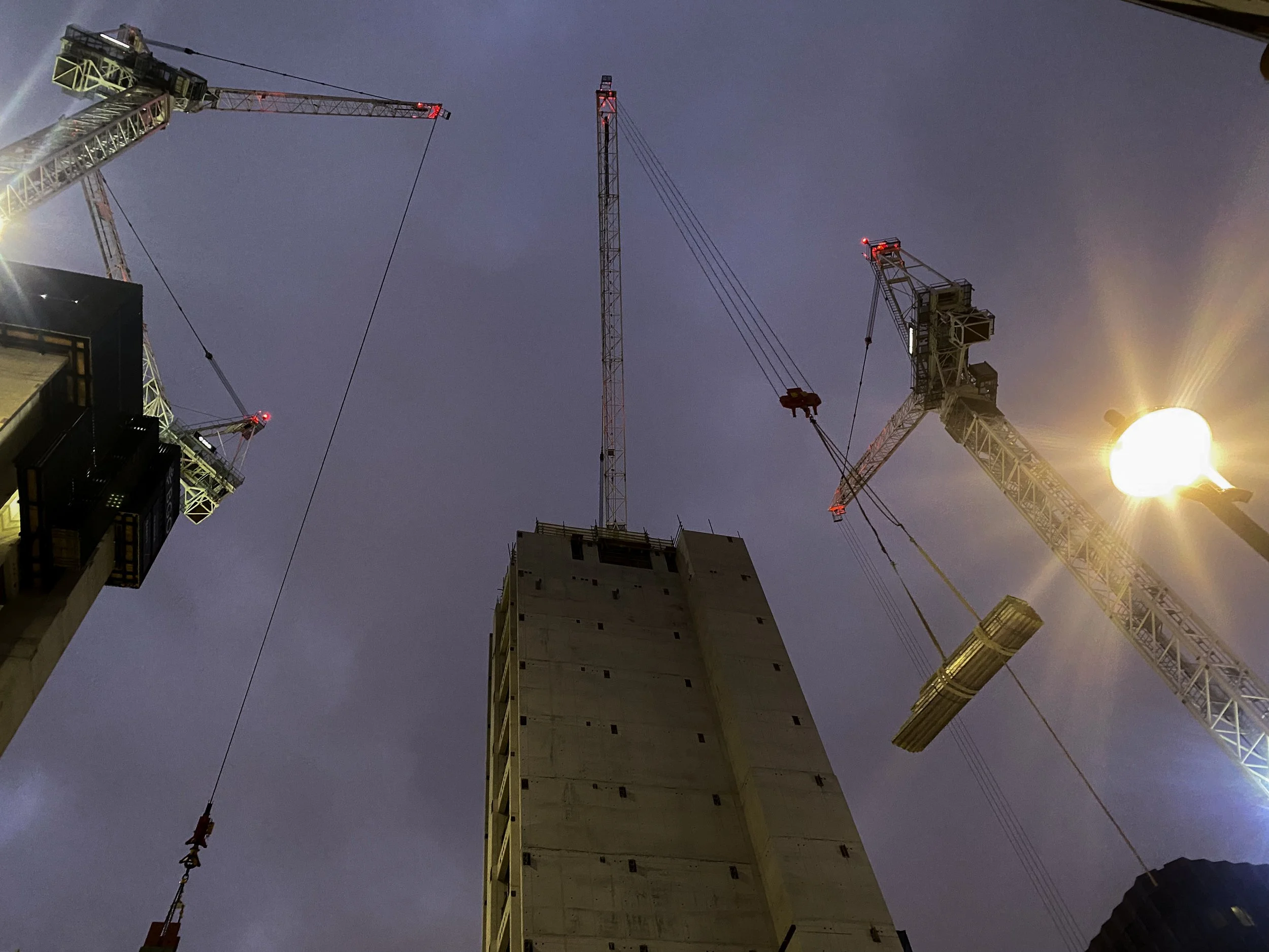 I took this photo of the sky above a construction site and have found myself returning to it in my camera roll over the last few weeks. It wasn’t until the exhibition was over, my artwork was off the wall and hidden away in a locker somewhere and I looked at the image again, that I realised that my subconscious mind was recreating aspects of the composition in the draped fabrics. Unbeknownst to myself, I had poured so much of this period of my life into this piece that I had previously felt was not communicating my ideas very well. A familiar version of myself suspended between the big sky and the big city. A small vignette from home washed up by the waves onto the sand for collection.